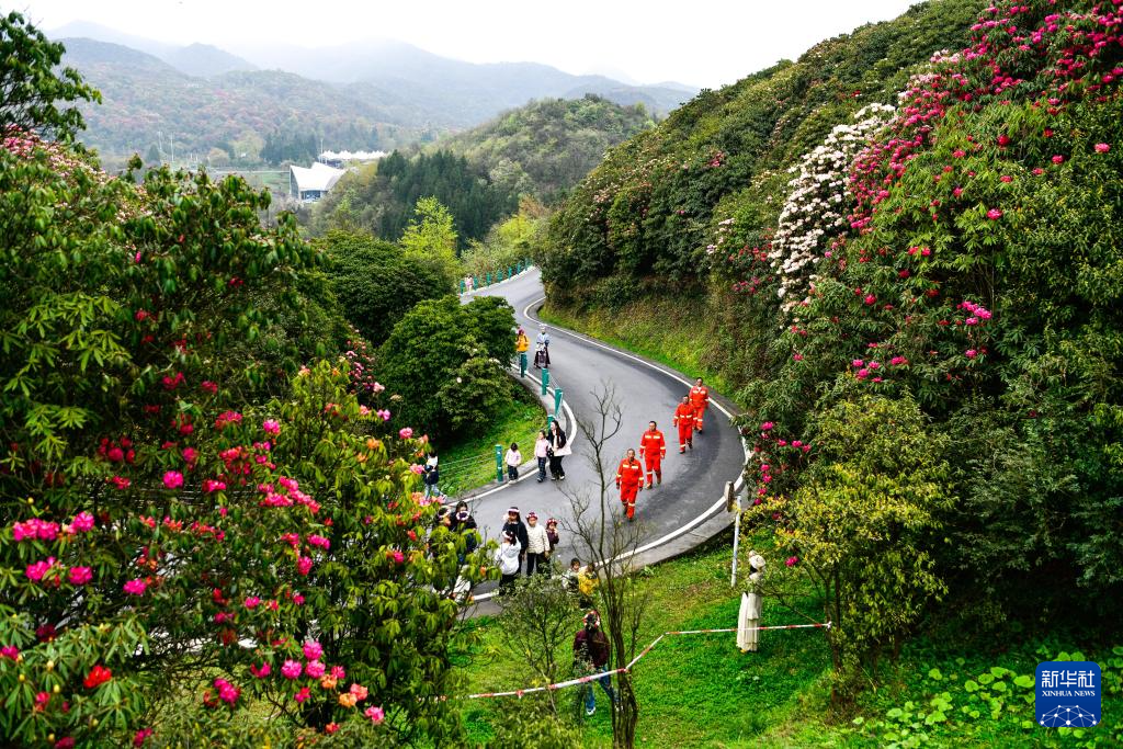 森林防火队员们在贵州百里杜鹃管理区金坡景区巡逻,排查森林火灾隐患(4月2日摄)。新华社记者 杨文斌 摄
