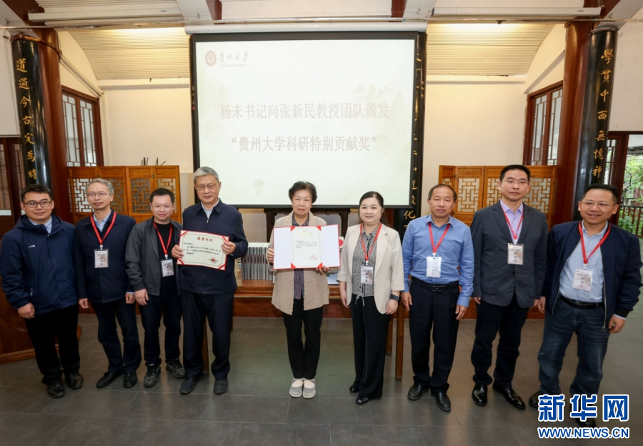 新华网贵阳4月20日电(黄勇)4月19日,《清水江乡民家藏文书考释》获中国出版政府奖图书奖庆祝表彰暨学术研讨会在贵州大学举行。贵州大学向图书编纂团队张新民教授团队颁发了“贵州大学科研特别贡献奖”。特邀的出版、文书学研究界的专家学者齐聚一堂,聚焦清水江文书的史料价值与学术地位,深入探讨其作为敦煌文书、徽州文书之外又一系统完整的民间契约文书宝库的独特价值。