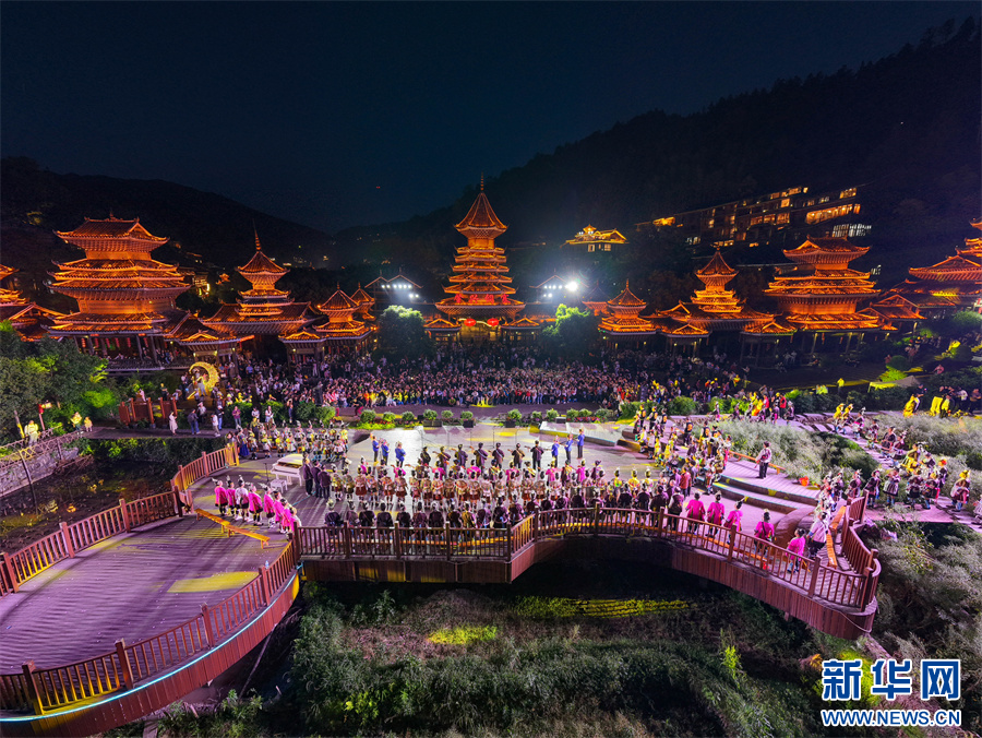 4月19日,在贵州省黎平县肇兴侗寨,当地群众身着民族服饰参加活动。新华网发(龙建睿 摄)