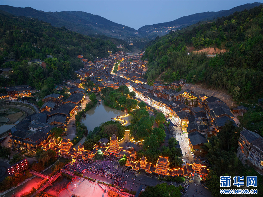4月18日拍摄的贵州省黎平县肇兴侗寨夜景。新华网发(龙建睿 摄)