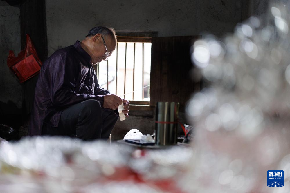 银匠吴仕清在黎平县水口镇纪流村制作银饰(4月21日摄)。新华社记者 刘续 摄