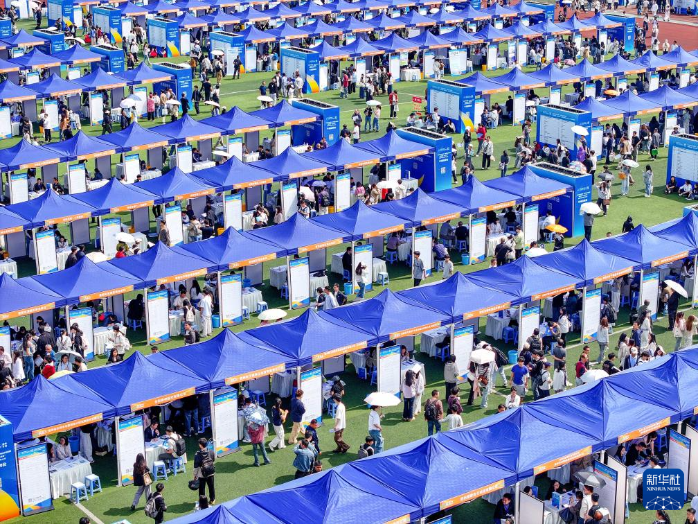 4月25日拍摄的第十四届贵州人才博览会现场(无人机照片)。新华社发(龙建睿 摄)